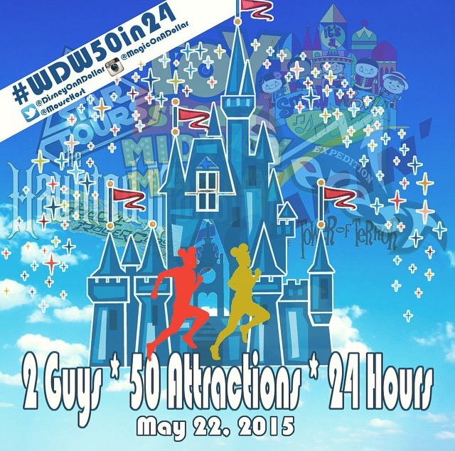 We decided to create our own challenge, inspire by the Parkeology created challenge. We decided we would pick our own attractions (not just rides) and attempt to squeeze them into 24 hours. David suggested that we create a hashtag for promoting it on social media and said, “…you know, something like #wdw50in24.” So we went through all of the attractions in each park and made a list of “must do” and “maybe” attractions and when we were done we had exactly 50 attractions so we decided it was meant to be. Check out our list of attractions here.