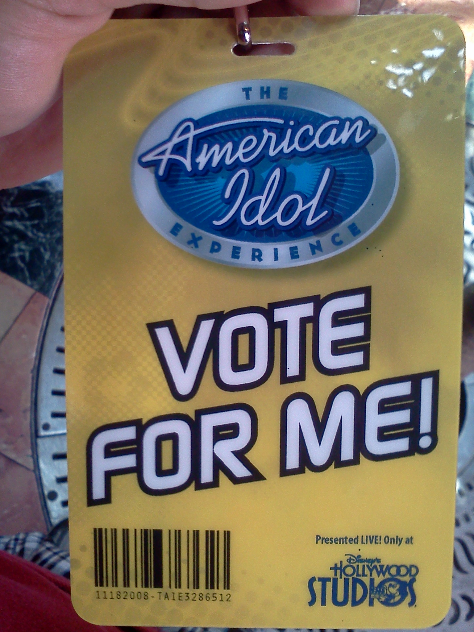 host and judges made the show very entertaining and authentic. The audience was fantastic as well. They cheered for all the performers and booed the grumpy judge. After the show numerous people told me I did well and that they voted for me. Later in the day we were in line for Toy Story Mania and a little girl motioned for me to come over and bend down. Once I did she shyly said, “You rocked on American Idol.” Cutest thing ever! The next day I was looking for a place to sit in a restaurant and a guy yelled across a patio, “Hey, I voted for you!” It was a pretty good feeling to hear all of the encouragement from the audience during and after the show even though I didn’t even win!