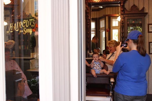 Much like the rest of Town Square and Main Street USA, when you set foot inside the Harmony Barber shop you feel as though you have been transported to a turn of the century small town because of the ornate and often authentic decor.  Everything from the wallpaper to the barber chairs give the shop that nostalgic feel.  It is definitely worth at least poking your head in even if you or a little one are not going for a trim.  If you time it just right you might even be visited by the barber shop quartet, The Dapper Dans.  I do believe they would make their appearance sometime around midday, so that would be the only reason (and a very good reason at that) to visit the shop any time other than the morning.