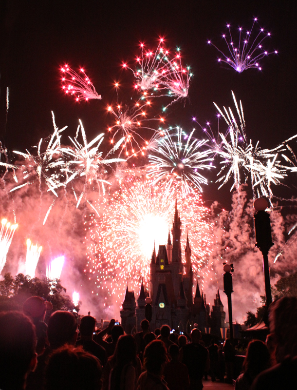 One advantage Walt Disney World has over any other location is the backdrop for a fireworks show.  I think you will have a difficult time finding a more picturesque horizon to view fireworks.  Between the numerous vantage points for IllumiNations in World Showcase and viewing Wishes behind one of the most recognized, most photographed buildings in the world, I’d say Walt Disney World has the advantage when it comes to location!