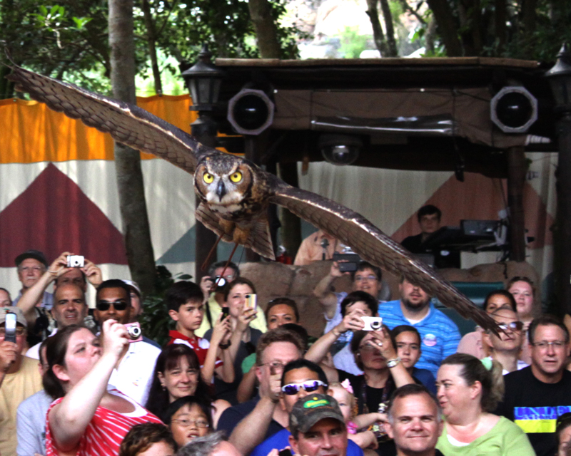 We made sure to take time to watch the Tam Tam drummers and got to see DiVine as well. I was upfront when the Tam Tam drummers began so I could get good photos of course and I just happened to be pulled in to help with a dance. Speaking of participating, I was also selected to go on stage in the Flights of Wonder show to photo an owl flying from the back of the theater to the stage (right by my head).