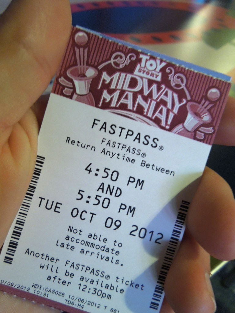 • Give a fastpass away.  One of my ??????????favorite things to do is eaves drop onfamilies while waiting in the queues.  I love to hear what they are saying about their experience, especially the little ones!  Sometimes you may overhear families mention skipping Toy Story Mania because the wait is 2 hours and there are no fastpasses left.  If you were smart you ran to the back of the park, nabbed some fastpasses and then rode it.  As much as you may want a rematch with someone or to see if you can beat your old score, think about how you could change someone’s day or even vacation by pulling those coveted passes out and handing them over.