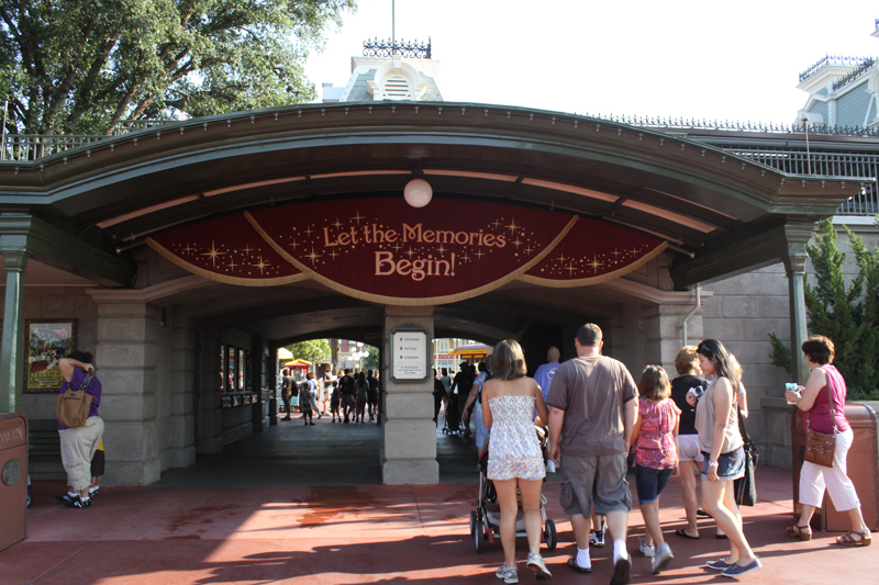 There is no better place for me to start than with the place that started it all: The Magic Kingdom. Most guests have no idea of the transportation that occurs as they enter the Magic Kingdom. It is here that guests go from attending a movie to being in the movie themselves. Once you present your ticket, you then enter into the lobby of the theater where you will find the “red carpet” made of bricks. After passing through the lobby you will enter into the dark tunnel underneath the train station acting as the theater’s hallway with posters of “coming presentations” on either side. These “coming presentations” are actually posters of the attractions you will experience in the park such as The Haunted